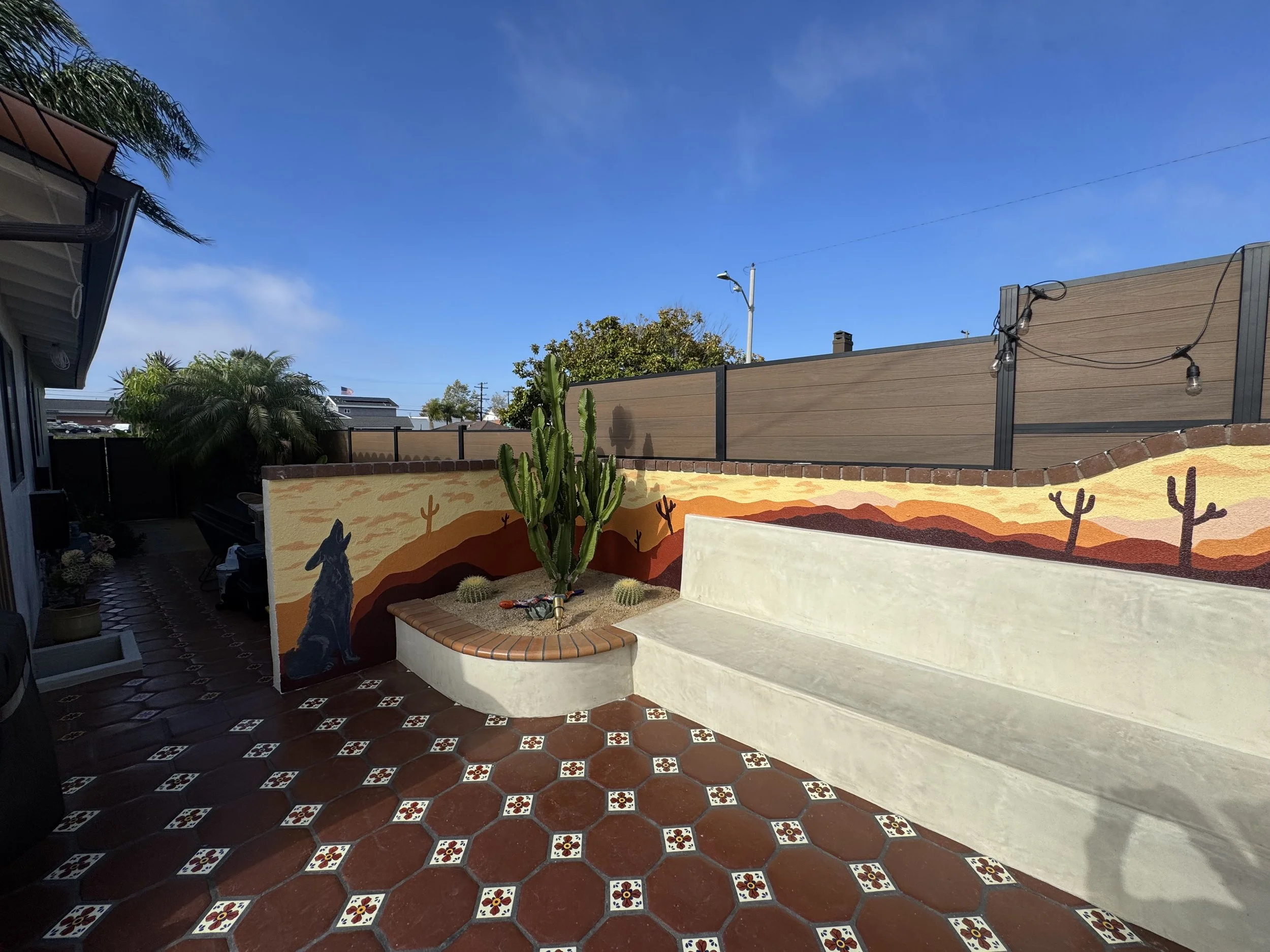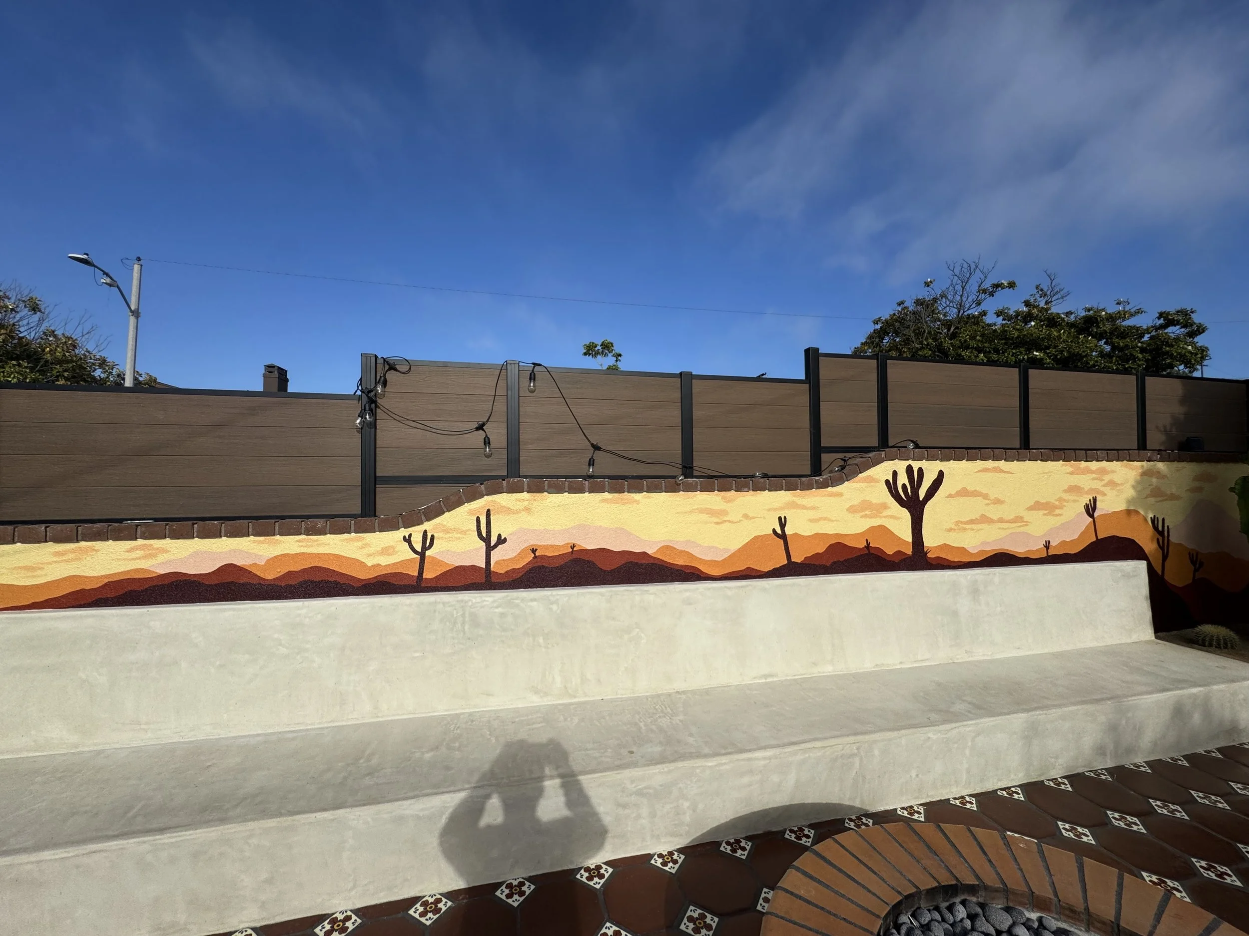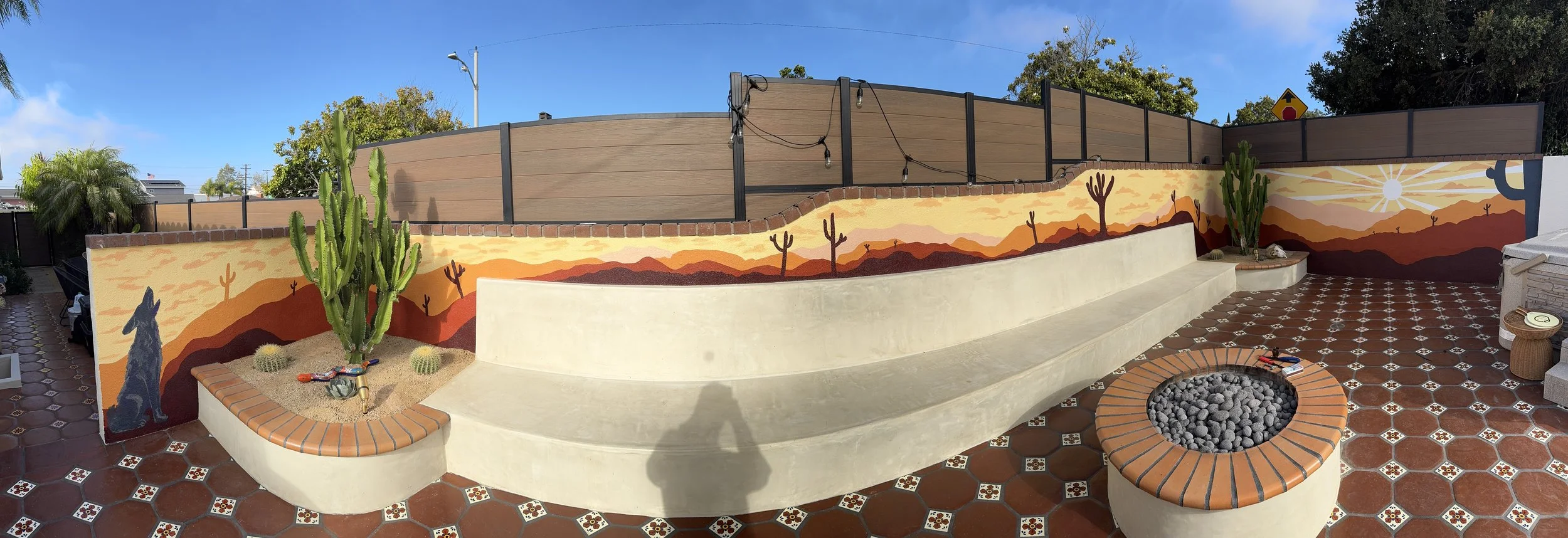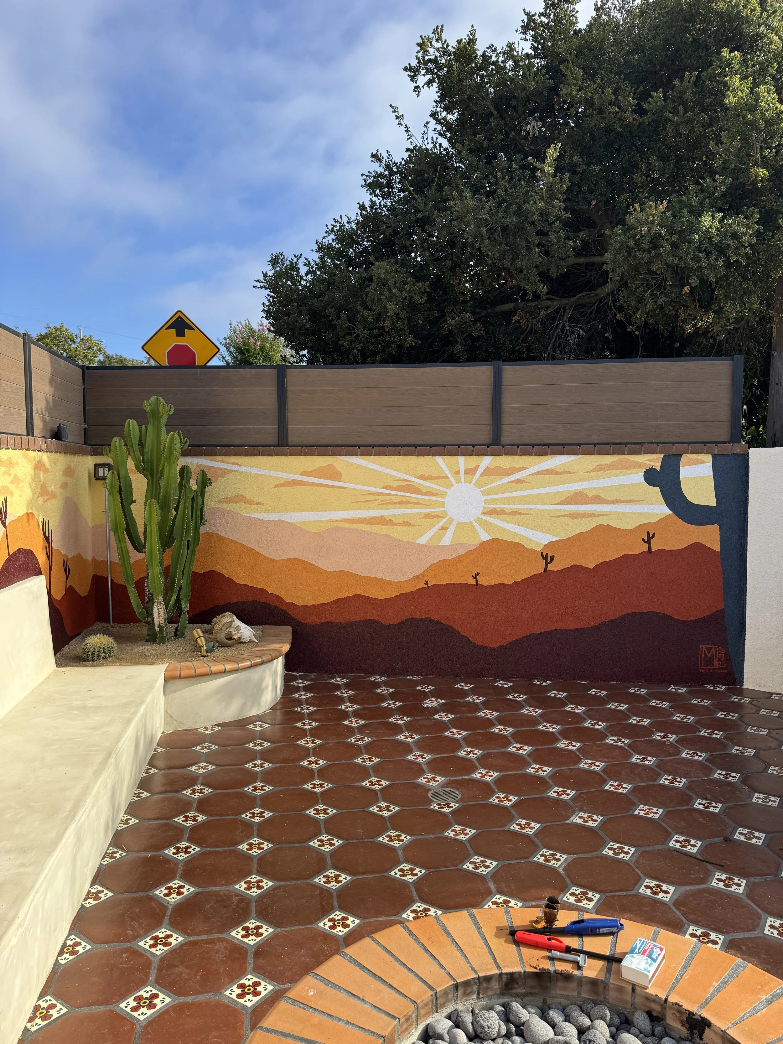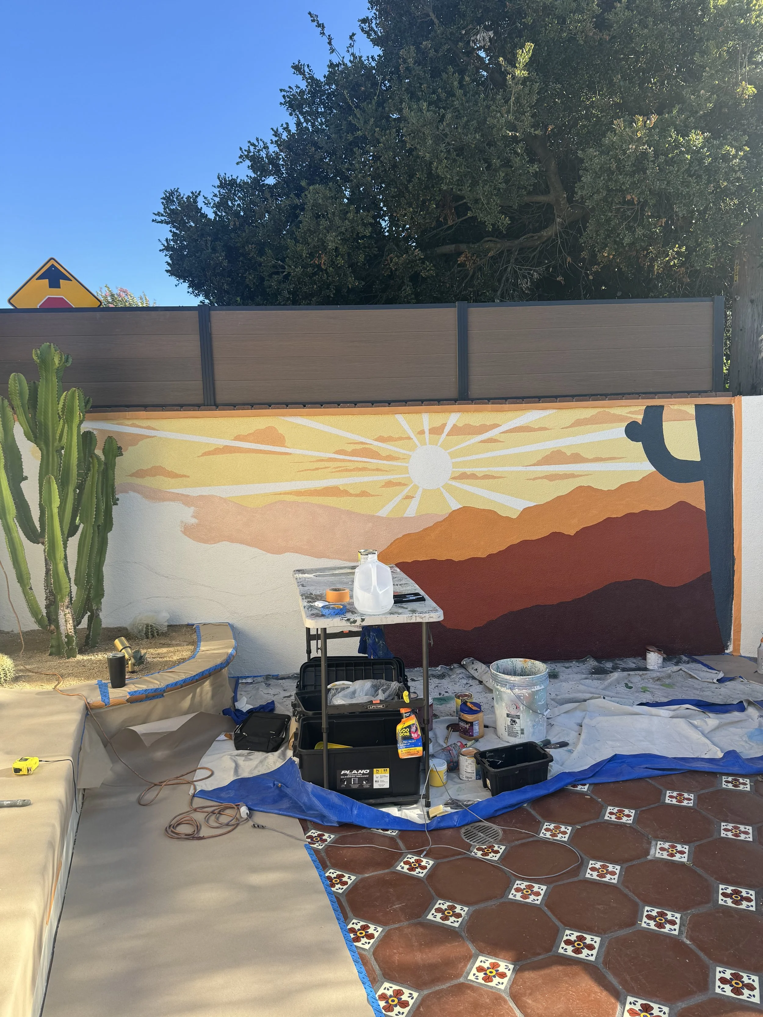 Client requested a desert scape for their newly remodeled backyard. Painted in 3 days on stucco, using a mix of Sherwin Williams and Nova Color paint.